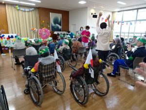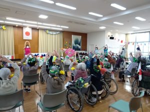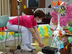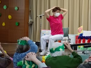 さあ、みなさん。 体操の先生を 真似してみて くださいね~! |