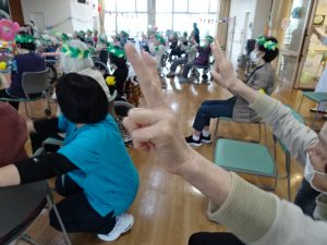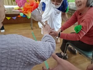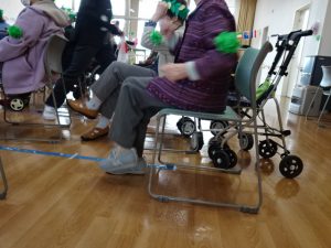 指先から足先まで、音楽に合わせて楽しく体をほぐします。